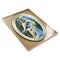 Icona raffigurante la Madonna di Fréchou.L'immagine è una stampa di carta lucida su legno ovale, con finiture a caldo in oro e in argento. La tavola può essere appesa grazie al gancio/foro che c'è sul retro.Materiale: legno. Dimensioni: 20x30 cm. Verrà consegnato in una scatola trasparente.Realizzato artigianalmente in Italia.