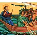 Icona raffigurante la Pesca Miracolosa. Questa immagine è una stampa su tavola in legno. Il quadro può essere appeso alla parete grazie al foro che c'è sul retro.Dimensioni: 14,8 x 10,5 cm. Prodotto in Italia.