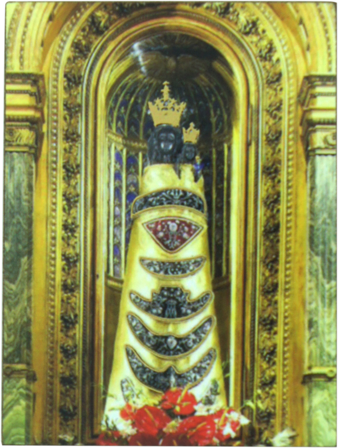 Tavola raffigurante la Madonna di Loreto a forma di cubo.L'immagine è una stampa di carta lucida su legno scuro.La tavola può essere appoggiata grazie al suo spessore.Materiale: legno. Dimensioni: 5,5 x 7 cmRealizzato artigianalmente in Italia.