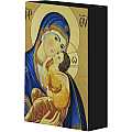 Quadro icona Madonna della Tenerezza con il manto azzurro stampa su legno - 10 x 15 cm