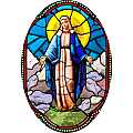 Stampa che rappresenta la Madonna Miracolosa.Questa stampa ad arco ha colori vivaci ed il tipo di lavorazione ricorda le vetrate in stile gotico.La decorazione dorata è eseguita con oro lucido, così il bordo che attornia la stampa stessa. La misura è di cm 10 x 27.Realizzato in Italia.