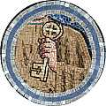 Stampa in legno che rappresenta San Pietro.Questa tavola a forma di cuspide ha colori vivaci ed il tipo di lavorazione ricorda il mosaico (Sotto l'immagine del Santo vi è il simbolo con cui è ricordato).La decorazione dorata è eseguita con oro lucido. La misura è di cm 10 x 27.Realizzato in Italia.
