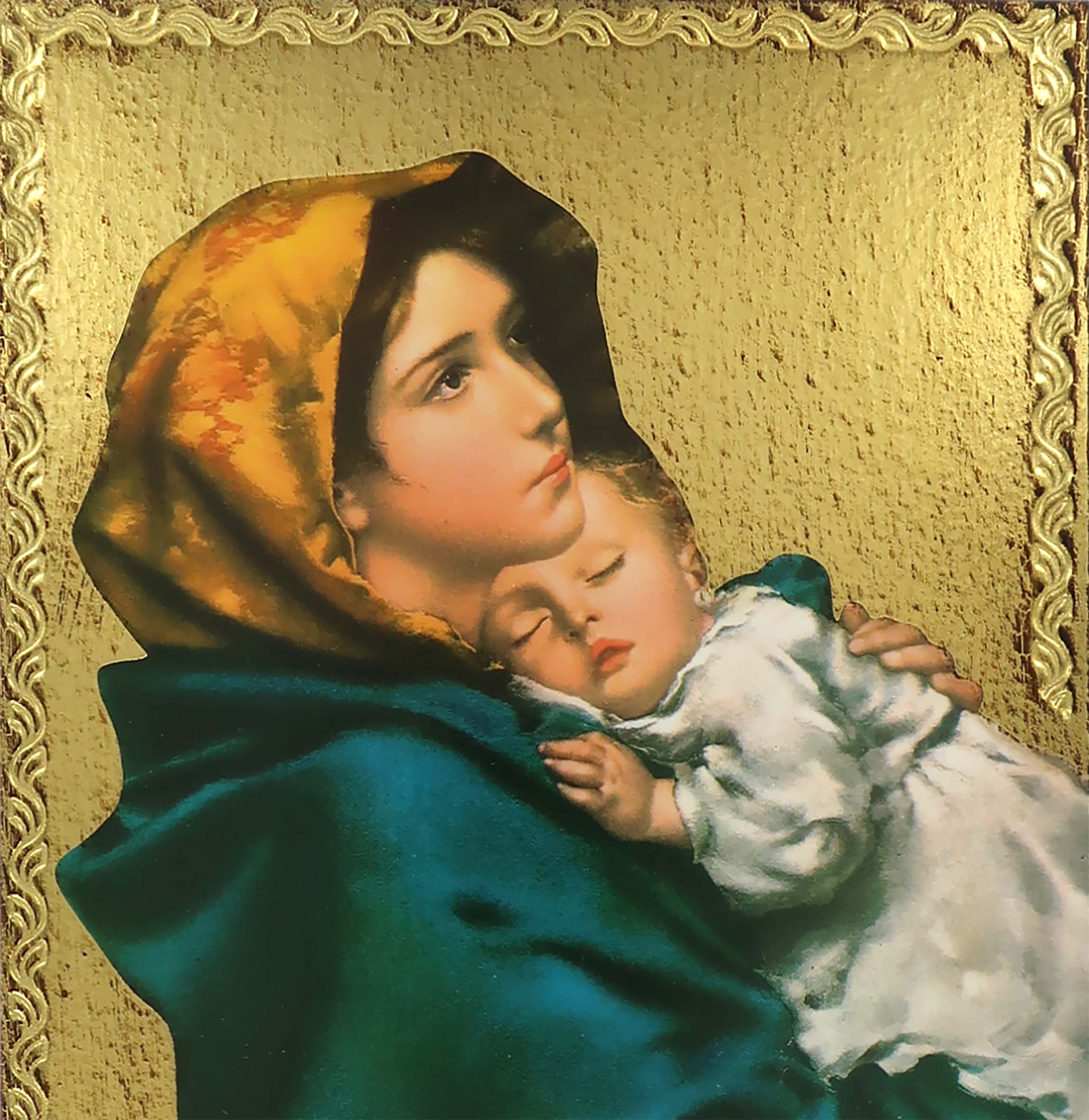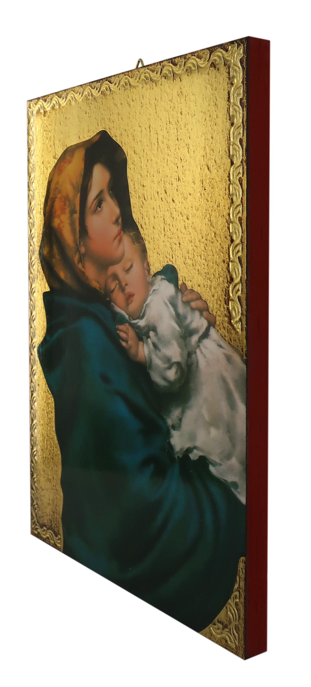 La tavola, in stile fiorentino ci presenta la Madonna con il Bambino in braccio: ideata dal pittore Ferruzzi si distingue per il volto di entrambe che emanano santità.Lo sfondo della tavola è di colore dorato ed ha impressa una cornice che conferisce particolare bellezza e luminosità.La tavola è dotata di un pratico gancio con il quale è possibile appenderla al muro.Peso: 390 gr. Materiale: legno di pioppo. Realizzato in Italia.