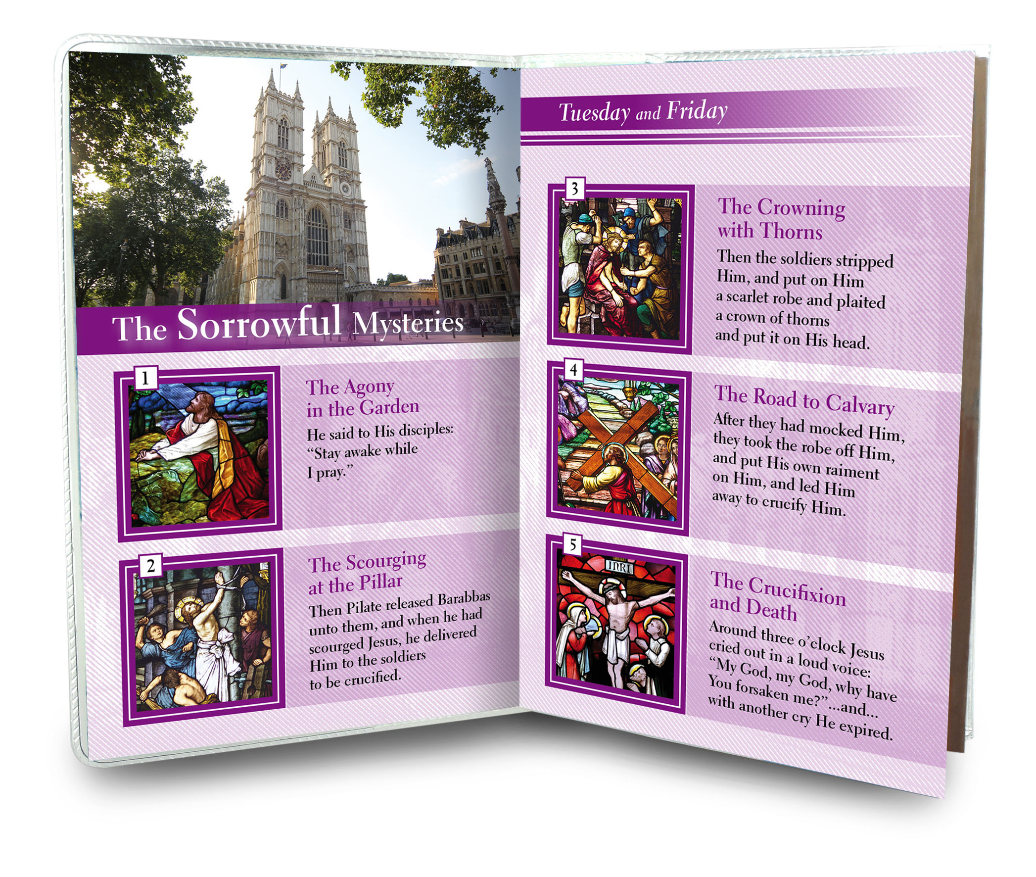 Il libretto, composto da 16 pagine, si presenta con una copertina in plastica trasparente e nell'interno vi è un piccolo rosario con i grani tipo perlina del diamero di mm 4. Nell'interno troviamo la spiegazione di come recitare il Santo Rosario e una preghiera a San Pietro.La misura è di cm 9,5 x14,5. Realizzato e stampato in Italia. (Il rosario potrebbe variare in base alla disponibilità)