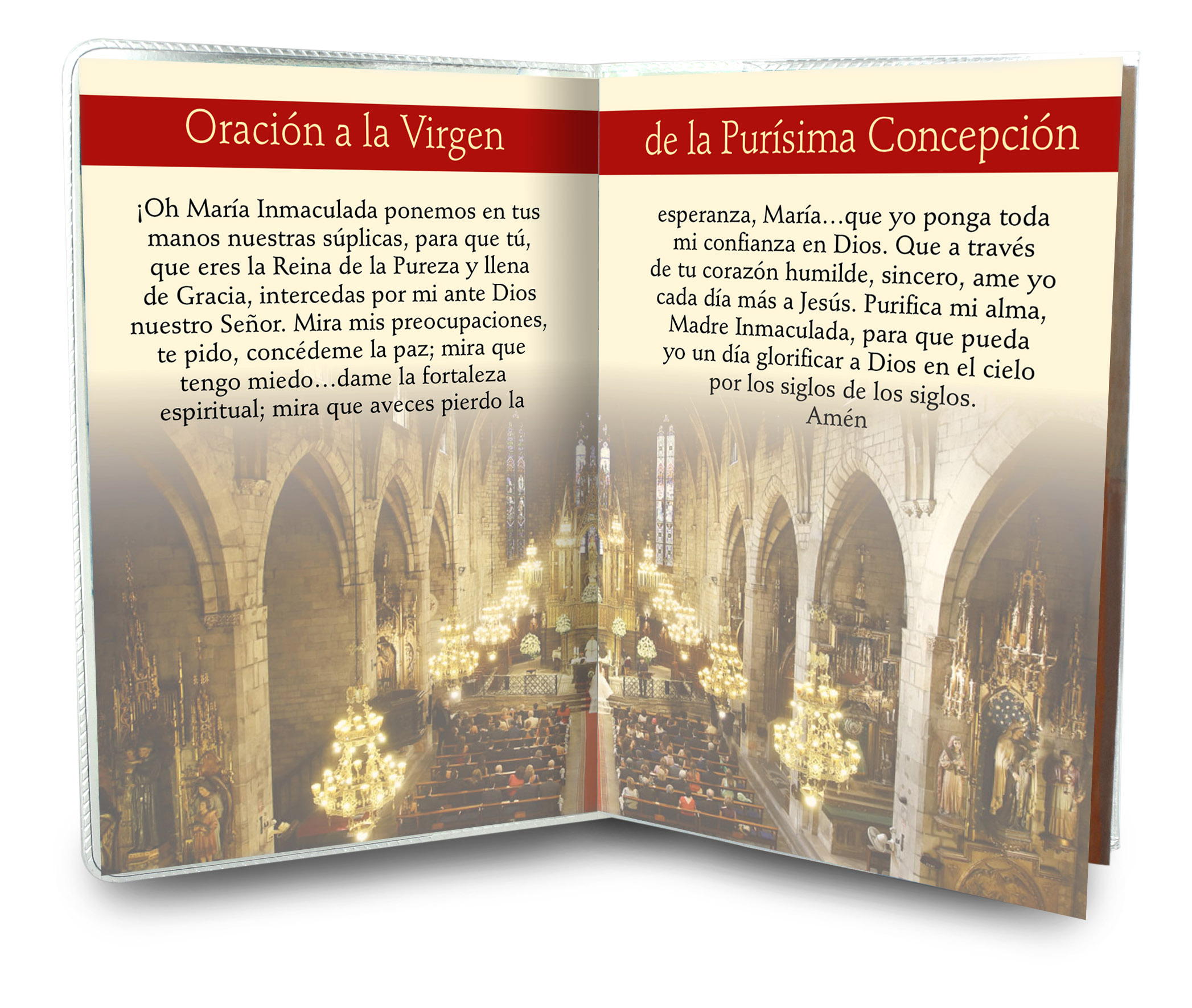 Il libretto, composto da 16 pagine, si presenta con una copertina in plastica trasparente e nell'interno vi è un piccolo rosario con i grani tipo perlina del diamero di mm 4. Nell'interno troviamo la spiegazione di come recitare il Santo Rosario e delle preghiere dedicate alla Basilica de la Purisima Concepcion.La misura è di cm 9,5 x14,5. Realizzato e stampato in Italia. (Il rosario potrebbe variare in base alla disponibilità)