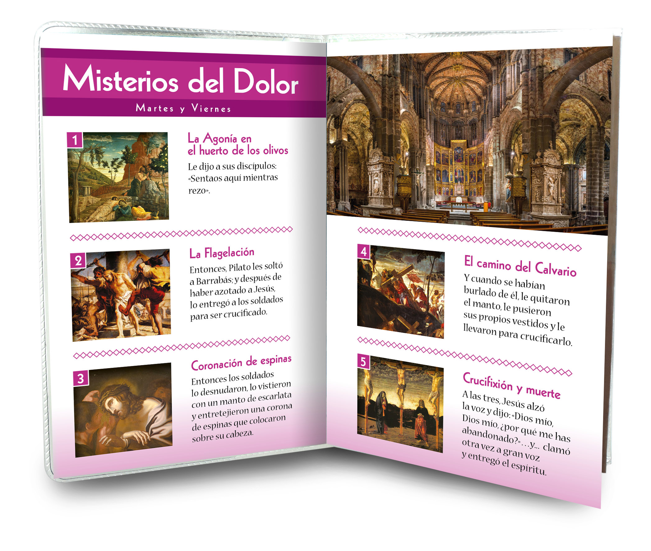 Il libretto, composto da 16 pagine, si presenta con una copertina in plastica trasparente e nell'interno vi è un piccolo rosario con i grani tipo perlina del diamero di mm 4. Nell'interno troviamo la spiegazione di come recitare il Santo Rosario e delle preghiere dedicate alla Catedral de Avila.La misura è di cm 9,5 x14,5. Realizzato e stampato in Italia. (Il rosario potrebbe variare in base alla disponibilità)