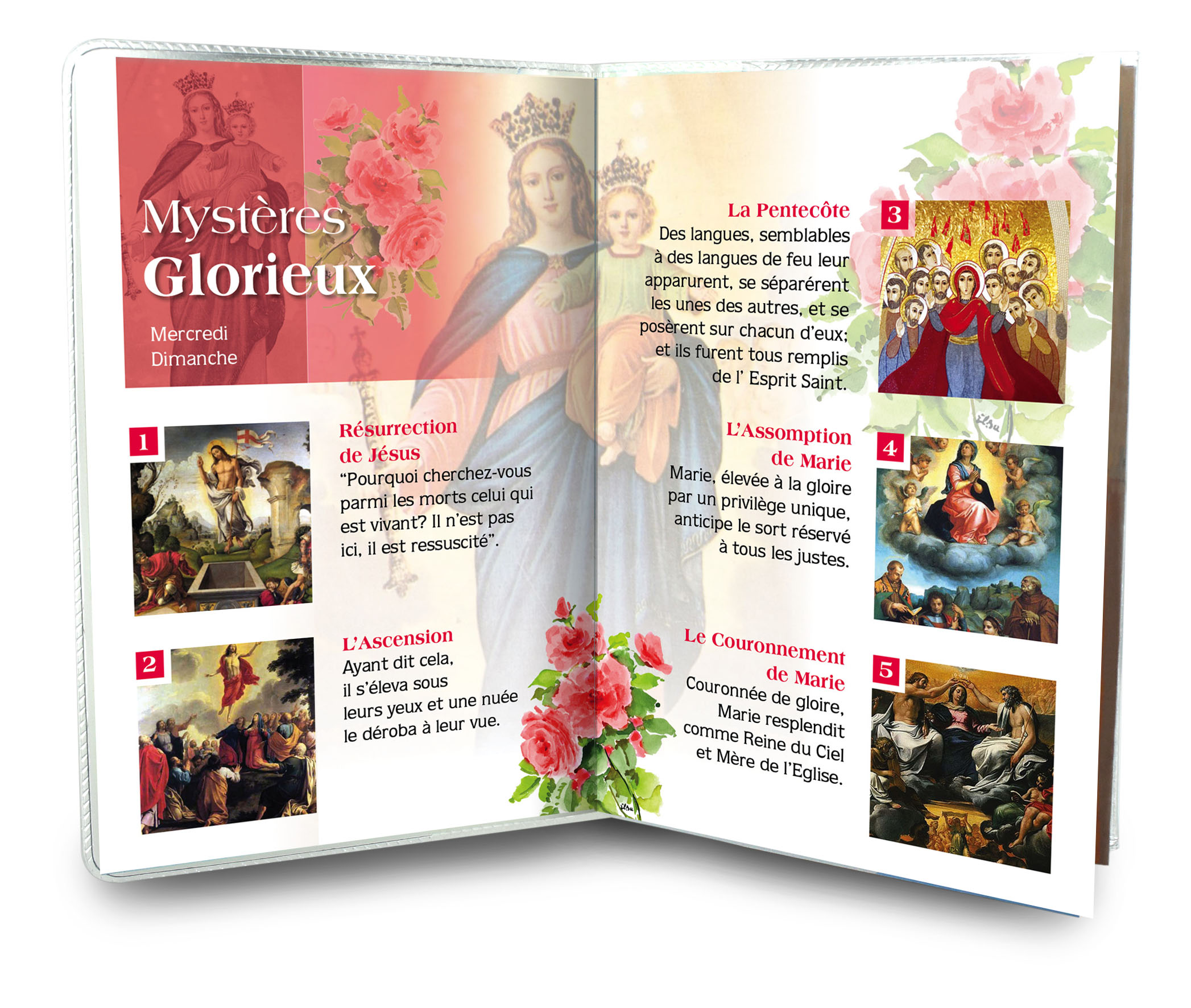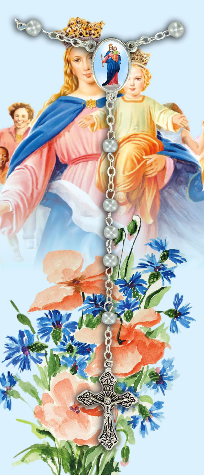 Il libretto, composto da 16 pagine, si presenta con una copertina in plastica trasparente e nell'interno vi è un piccolo rosario con i grani tipo perlina del diamero di mm 4. Nell'interno troviamo la spiegazione di come recitare il Santo Rosario ed una preghiera di consacrazione della famiglia a Maria Ausiliatrice.La misura è di cm 9,5 x14,5. Realizzato e stampato in Italia. (Il rosario potrebbe variare in base alla disponibilità)