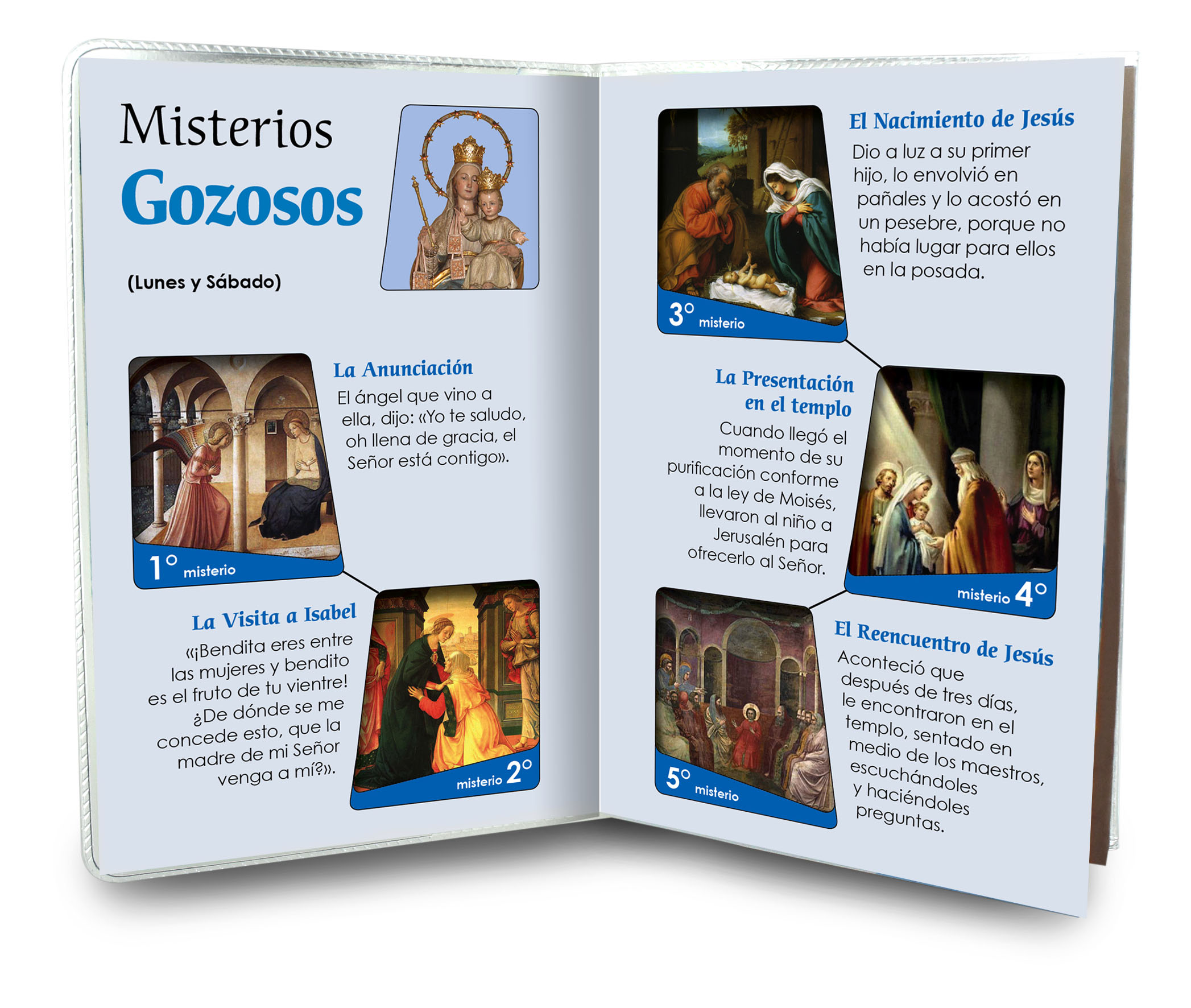 Il libretto, composto da 16 pagine, si presenta con una copertina in plastica trasparente e nell'interno vi è un piccolo rosario con i grani tipo perlina del diamero di mm 4. Nell'interno troviamo la spiegazione di come recitare il Santo Rosario ed una preghiera di dedicata alla Madonna del Carmelo.La misura è di cm 9,5 x14,5. Realizzato e stampato in Italia. (Il rosario potrebbe variare in base alla disponibilità)