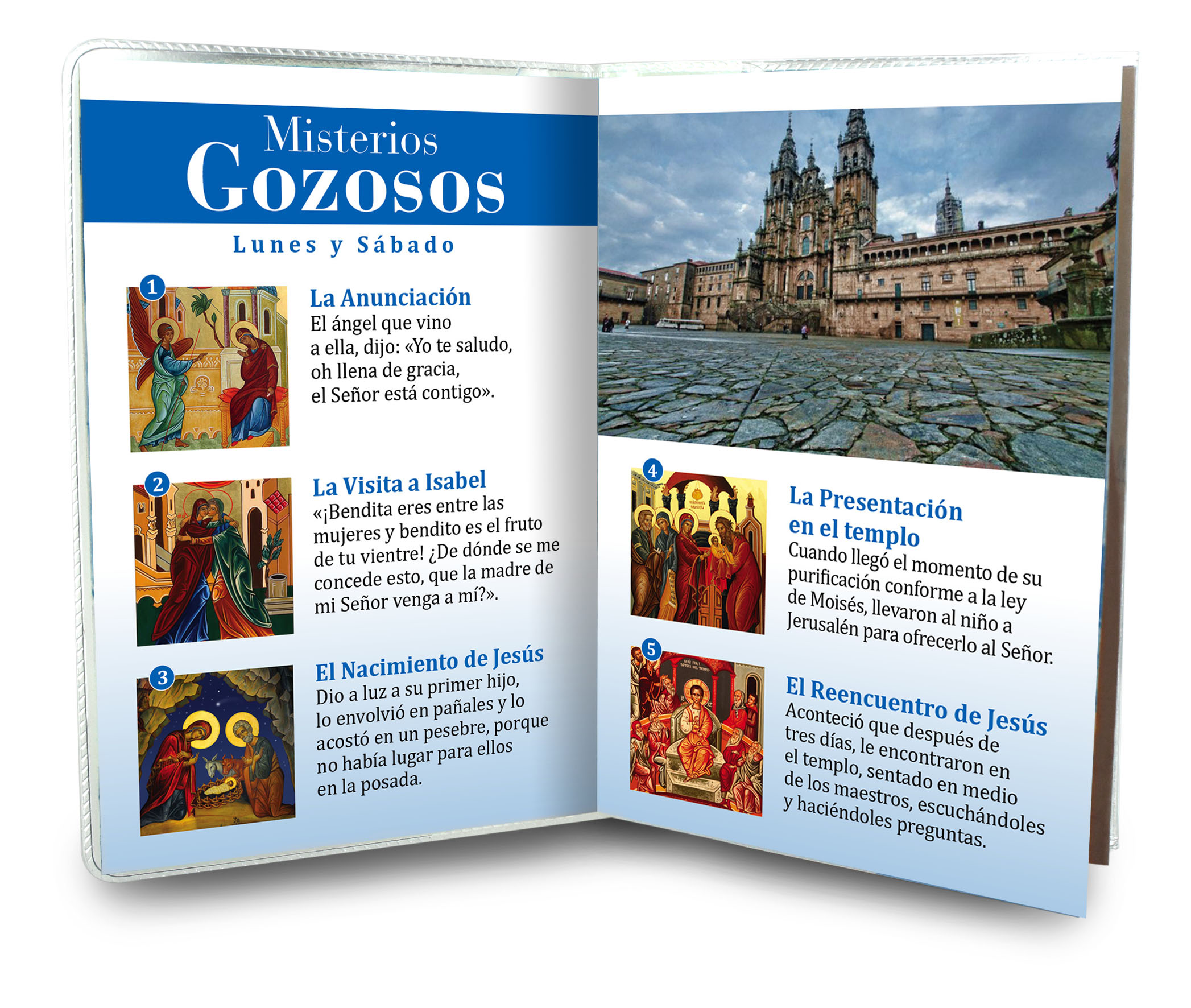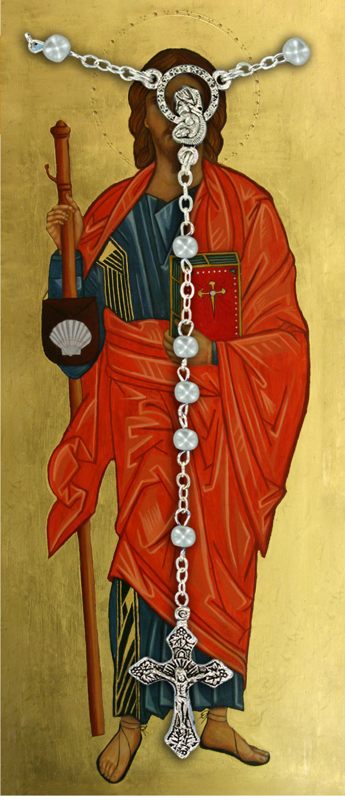 Il libretto, composto da 16 pagine, si presenta con una copertina in plastica trasparente e nell'interno vi è un piccolo rosario con i grani tipo perlina del diamero di mm 4. Nell'interno troviamo la spiegazione di come recitare il Santo Rosario ed una preghiera dedicata a San Giacomo il maggiore.La misura è di cm 9,5 x14,5 Realizzato e stampato in Italia. (Il rosario potrebbe variare in base alla disponibilità)