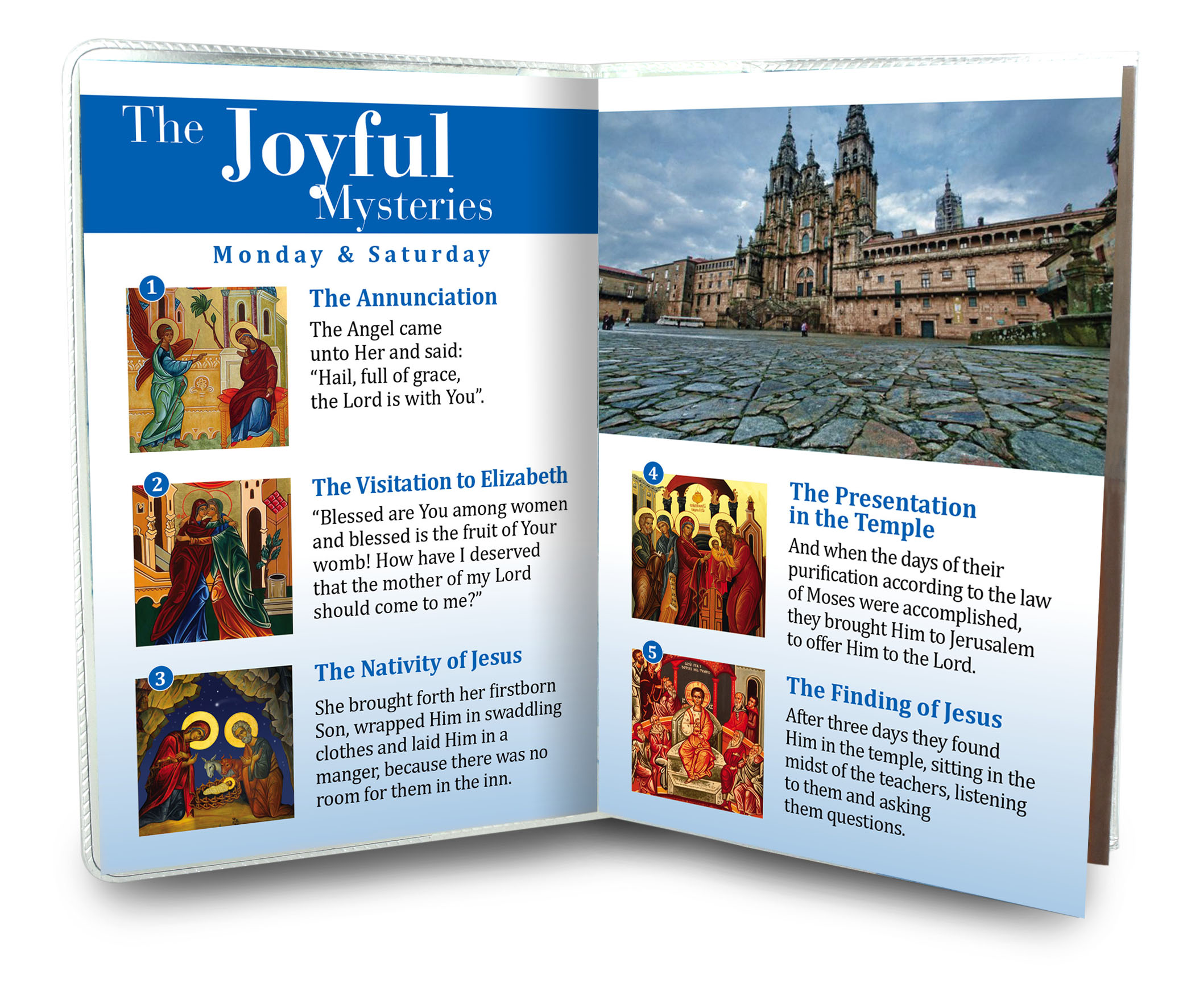 Il libretto, composto da 16 pagine, si presenta con una copertina in plastica trasparente e nell'interno vi è un piccolo rosario con i grani tipo perlina del diamero di mm 4. Nell'interno troviamo la spiegazione di come recitare il Santo Rosario ed una preghiera dedicata a San Giacomo il maggiore.La misura è di cm 9,5 x14,5Realizzato e stampato in Italia. (Il rosario potrebbe variare in base alla disponibilità)