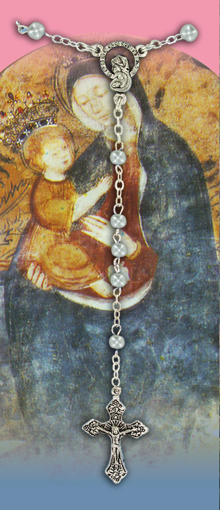 Il libretto, composto da 16 pagine, si presenta con una copertina in plastica trasparente e nell'interno vi è un piccolo rosario con i grani tipo perlina del diamero di mm 4. Nell'interno troviamo la spiegazione di come recitare il Santo Rosario e una preghiera alla Vergine Maria.La misura è di cm 9,5 x14,5. Realizzato e stampato in Italia. (Il rosario potrebbe variare in base alla disponibilità)