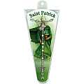 Il ventaglio è composto da 4 petali in cartoncino pesante.Sul primo e sull'ultimo petalo è stampata l'immagine di Saint Patrick mentre sugli altri due sono stampati i misteri del rosario in inglese.All'interno del blister è inserita una corona del rosario. *I colori del rosario possono variare.Realizzato in Italia. *Verrà consegnato in una busta di plastica rigida trasparente.