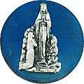 Calamita con forma ottagonale, in metallo nichelato con smalto blu che circonda la placchetta in metallo, raffigurante la Madonna di Lourdes. La misura della calamita è di 4 cm.Realizzato in Italia.