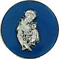 Calamita con forma ottagonale, in metallo nichelato con smalto blu che circonda la placchetta in metallo, raffigurante Sant'Antonio. La misura della calamita è di 4 cm.Realizzato in Italia.