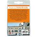 Calamita in metallo nichelato raffigurante Santa Rosalia con preghiera in italiano.L'immagine è colorata con colori tenui e la sensazione di lucido che da è dovuta ad una patina di resina trasparente.Nell'interno del blister c'è anche un cartoncino con l'immagine della Santa e sul retro del cartoncino stesso una preghiera a lei dedicata.La misura della calamita è di 3,8 x 2,8 cm. Il peso è di gr. 17.Realizzato in Italia.