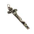 Croce a bastoncino con il Cristo riportato in argento 925.Altezza della croce: 4 cm. Il peso è di 2,5 gr.Realizzato in Italia.