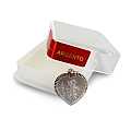 Ciondolo in argento 925 a forma di cuore con profilo zigrinato raffigurante San Cristoforo.L'altezza della medaglia è di cm 1,9 ed è comprensiva di anello fisso.Il prodotto,realizzato in Italia,verrà consegnato in una scatolina trasparente.