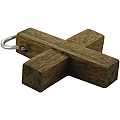 Croce in legno naturale di misura 2,5 x 2,5 cm dotata di pratico anellino.Prodotto realizzato in Italia.