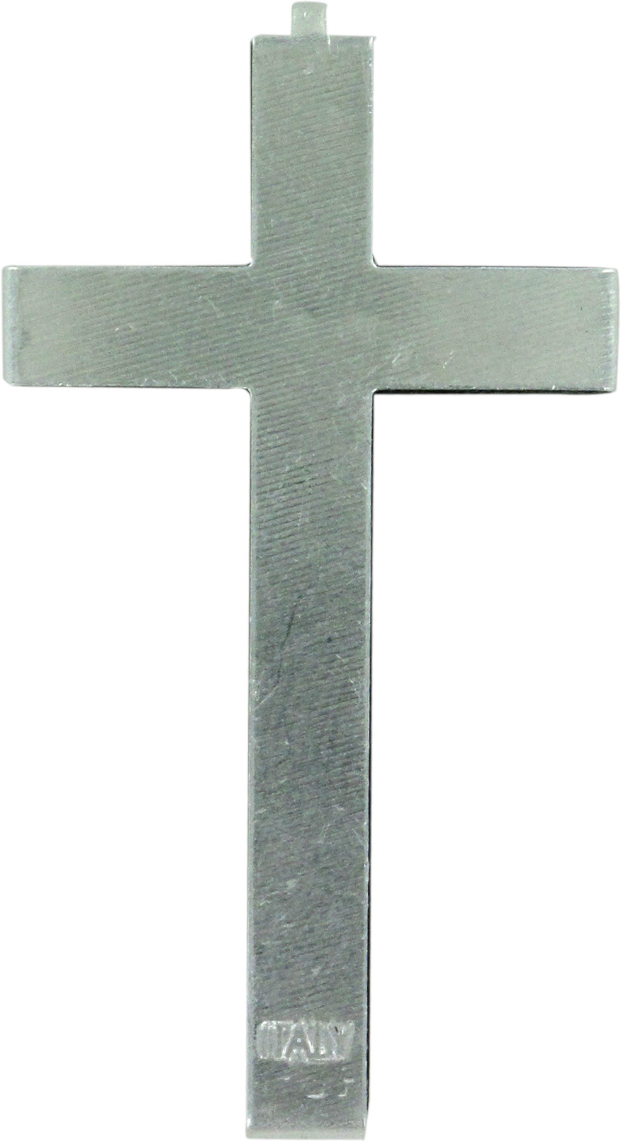 Croce in legno naturale con retro in metallo con retro in metallo di misura 5,5 x 3 cm.I dettagli, la croce, i bordi e l'iscrizione, sono realizzati in metallo argentato e conferiscono particolare bellezza all'oggetto.Il prodotto è completamente realizzato in Italia.