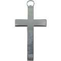 Croce in legno tinto color nero di misura 4,3 x 2,5 cm con retro in metallo.I dettagli, il retro, l'iscrizione e la croce, sono realizzati in metallo argentato.Il prodotto è completamente realizzato in Italia.