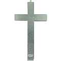 Croce in legno tinto color nero con retro in metallo con retro in metallo di misura 5,5 x 3 cm.I dettagli, la croce, i bordi e l'iscrizione sono realizzati in metallo e conferiscono particolare bellezza all'oggetto.Il prodotto è completamente realizzato in Italia.