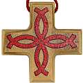 STOCK: Croce in ulivo con pesci e laccio rosso - 2,3 cm