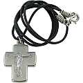 Croce con Cristo inciso in metallo argentato con laccio - 2,5 cm