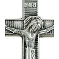 Croce con Cristo stampato in metallo nichelato di misura 5 x 3 cm.Prodotto realizzato interamente in Italia (con punzontura sul retro).