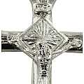 Croce in metallo argentato con Cristo. Altezza della croce: 3 cm.Realizzato in Italia.