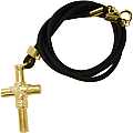 Croce in metallo dorato con cordoncino in caucciu nero. La croce misura 3 cm d'altezza, mentre il cordoncino misura 50 cm. Realizzato in Italia.