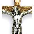 Croce in metallo dorato con Cristo argentato. Altezza della croce 8,5 cm.Realizzato in Italia.