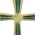 Croce in metallo dorato con smalto verde, da 7 cm.Il prodotto è completamente realizzato in Italia.