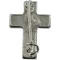 Crocetta distintivo in metallo argentato zigrinato con spilla - 2 cm