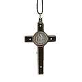 Croce San Benedetto in legno con Cristo in metallo - 8 cm