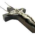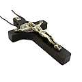 Croce San Benedetto in legno con Cristo in metallo - 8 cm