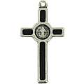 Croce San Benedetto in metallo nichelato con smalto nero - 3,5 cm