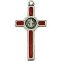 Croce di San Benedetto in metallo nichelato con sfondo in smalto rosso.Altezza della croce: 3,5 cm. Realizzato in metallo nichelato.La croce è dotata di un pratico foro per mettere il cordoncino o la catena.