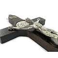 Crocifisso di San Benedetto in legno con Cristo in metallo argentato. Altezza della croce: 12 cm.Realizzato in Italia.
