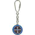 Portachiavi San Benedetto in metallo argentato con smalto blu