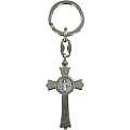 Portachiave della croce di San Benedetto in metallo nichelato. Realizzato in Italia