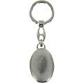 Il portachiavi è in metallo nichelato con l'immagine di San Benedetto. Si compone di un anello dove si possono infilare le chiavi, abbellito da una immaginetta ovale pendente. Il soggetto religioso rappresentato è colorato con colori tenui e l'aspetto lucido dell'immagine è dovuto a una patina di resina trasparente protettiva. Realizzato in Italia. Dimensioni (cm): 2,8 (L) x 10 (A) x 0,8 (P). Peso: 20 gr. Il solo ciondolo illustrato è alto 4 cm.