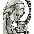 Medaglia raffigurante la Madonna con il Bambino in braccio.Realizzata in metallo ossidato. Altezza della medaglia: 2,6 cm. Prodotto in Italia.