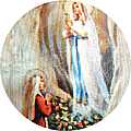 Medaglia Madonna di Lourdes tonda in argento 925 e porcellana - 1,8 cm