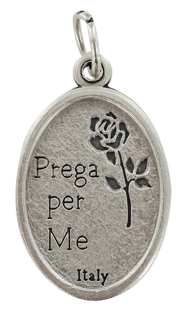 Medaglia ovale in metallo ossidato da 20 mm raffigurante San Francesco. Il prodotto ha la figura in rilievo ed è molto precisa nei particolari. Il prodotto è completamente realizzato in Italia.