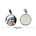 Medaglia Santa Madre Teresa di Calcutta in argento 925 e porcellana - 1,8 cm