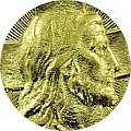 Medaglia in metallo dorato di cm. 1,9 con contorni sagomati, raffigurante il Volto di Cristo. Il prodotto è completamente realizzato in Italia.