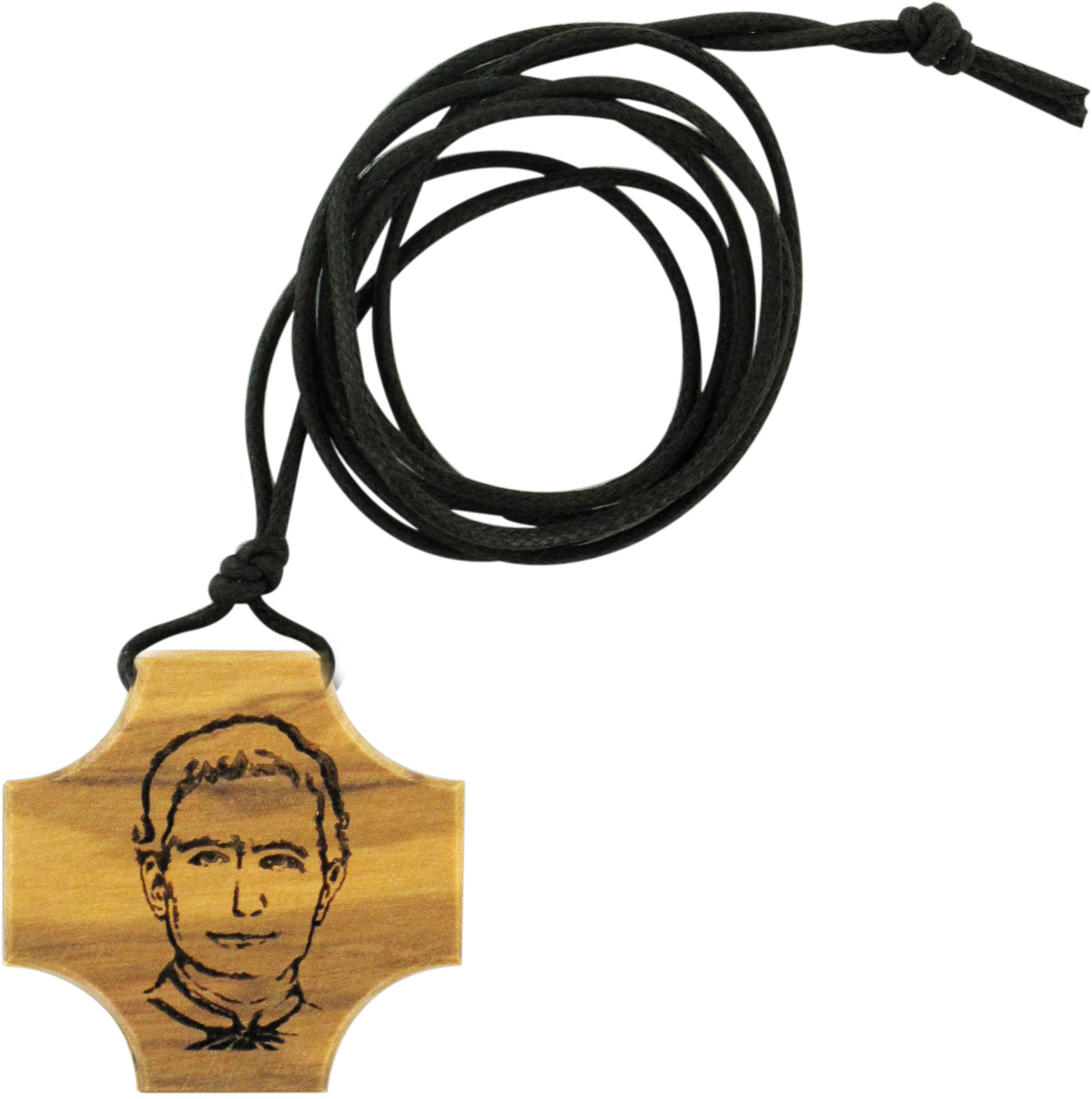 Croce in ulivo con incisone di Don Bosco.Viene consegnata con il suo cordino. Il prodotto è completamente realizzato in Italia.*Il legno d'ulivo non è di facile lavorazione in quanto nodoso e duro, ma la fatica nel lavorarlo è ricompensata dalla bellezza delle sue venature che danno a questo legno forme singolari ed un calore unico.