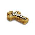 La crocietta si presenta in legno d'ulivo forato con il Cristo riportatto in metallo argentato.Il collierino in stoffa marrone completa l'articolo.Realizzato in Italia.