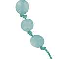 Rosario decina con grani tondi del diametro 7 in imitazione madreperla azzurra, rilegata a mano con filo colorato.Cuore e crocietta in legno d'ulivo con bordi azzurri.Realizzato in Italia.