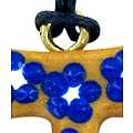 Croce tau in legno di ulivo con piccoli fiori in smalto blu dipinti a mano. Fornito con cordoncino in stoffa blu con tre nodi francescani, simbolo delle tre regole franciscane: povertà, castità e obbedienza. Il pendente e ideale come bomboniera per la prima comunione.Prodotto artigianalmente in Italia.